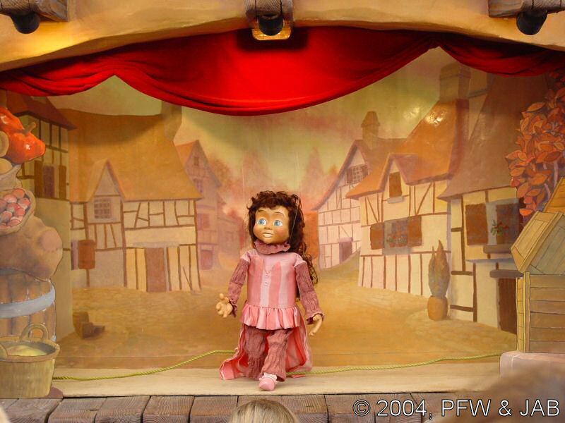 Een aantal keren per dag wordt een poppenshow opgevoerd. Het toneel is echter maar klein en het straatje nauw, dus is het dringen.
