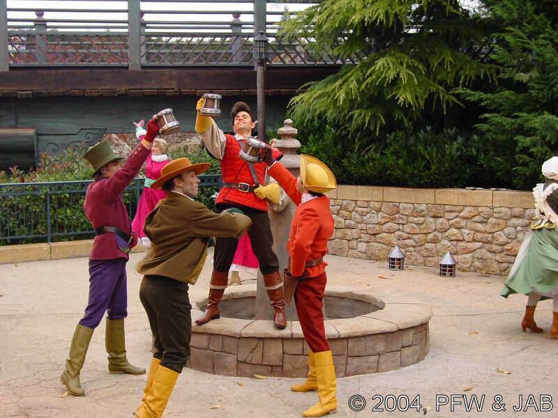 Belle, Gaston, de bakker en zijn vrouw, drie dorpelingen en de drie