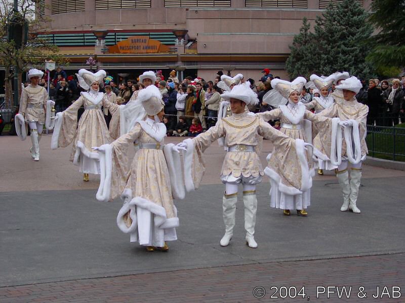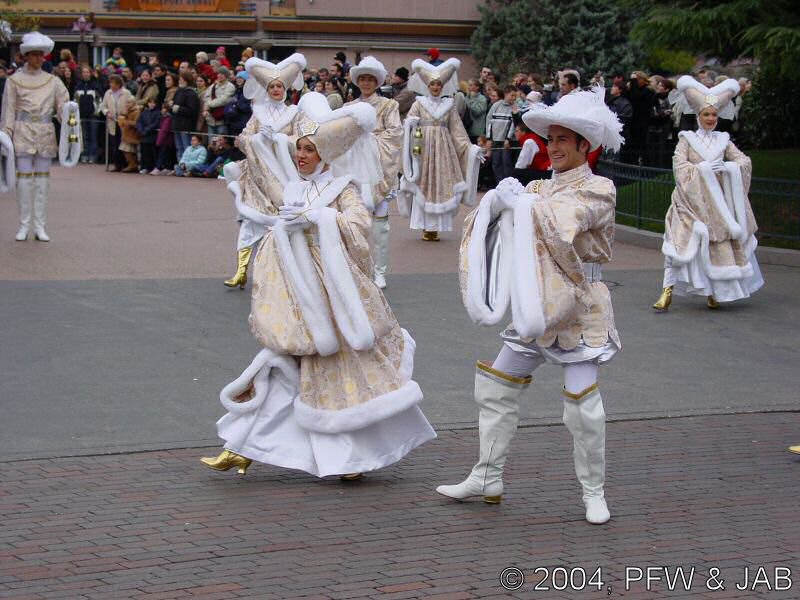 floats en de aankleding van de karakters is voornamelijk wit.