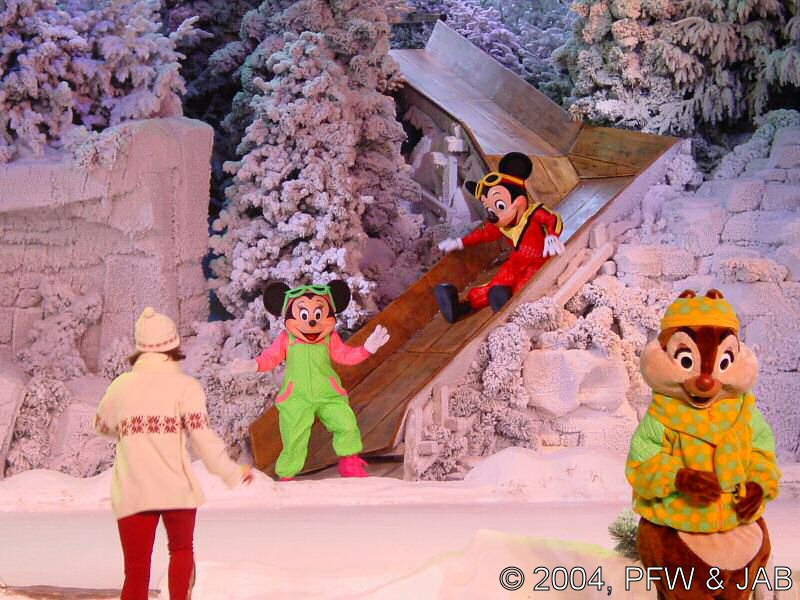 onderbroken door twee verdwaalde(?) skiërs, Pluto, Goofy, Knabbel &