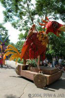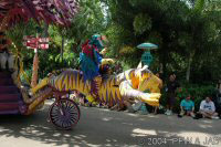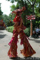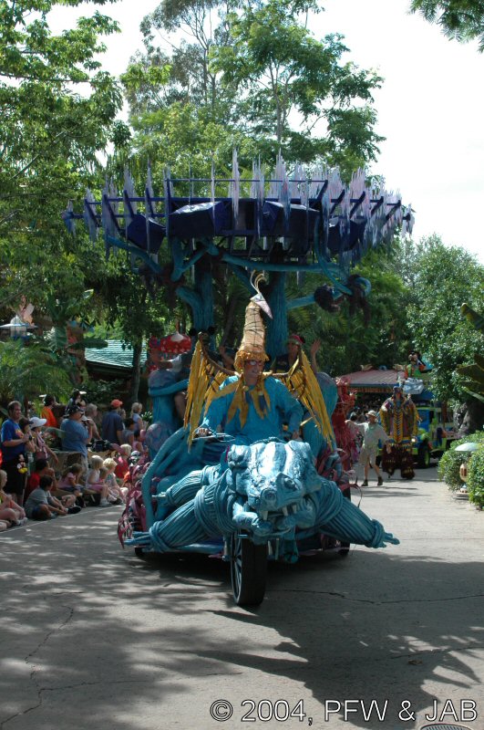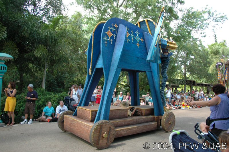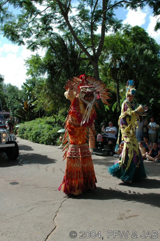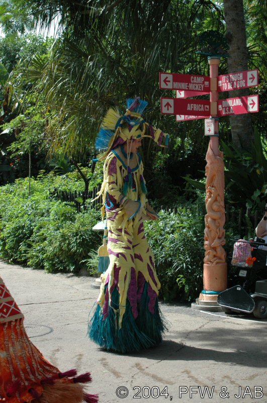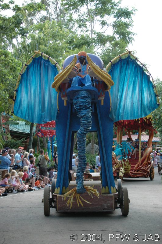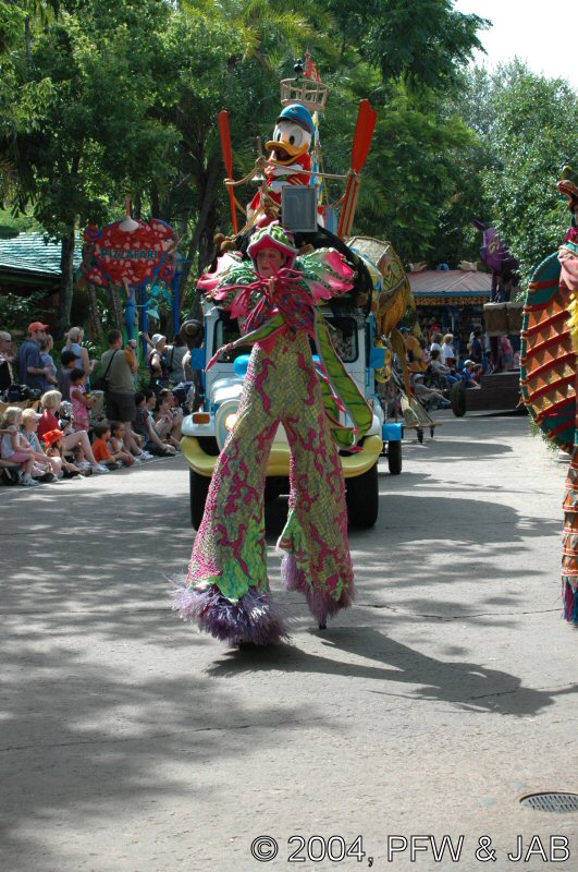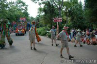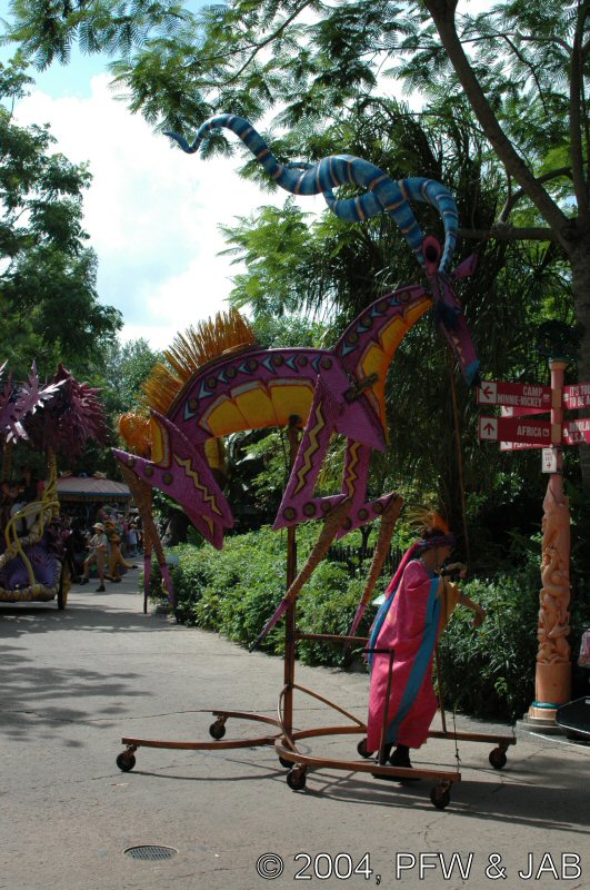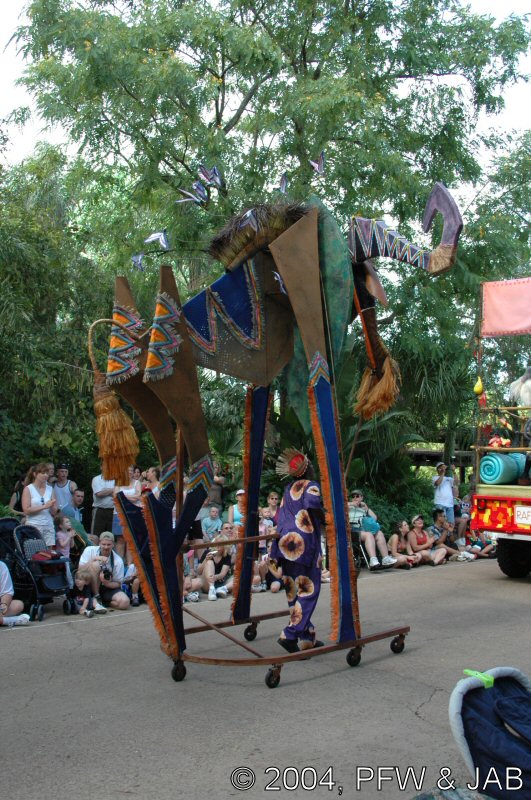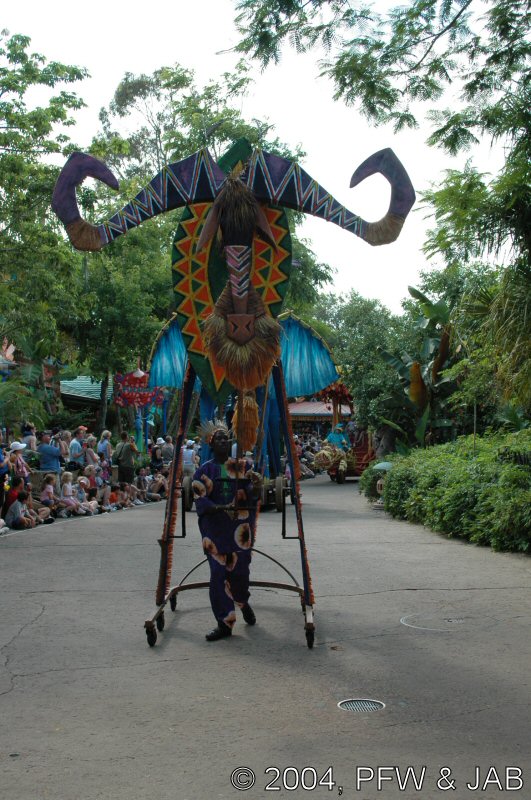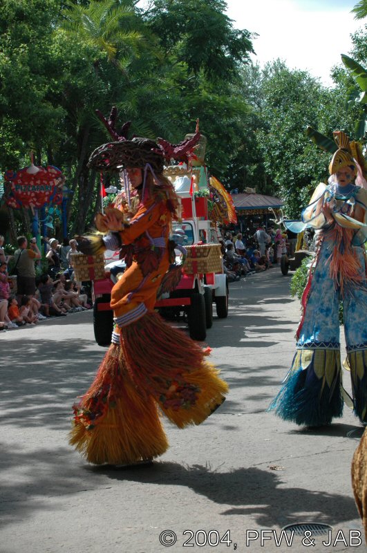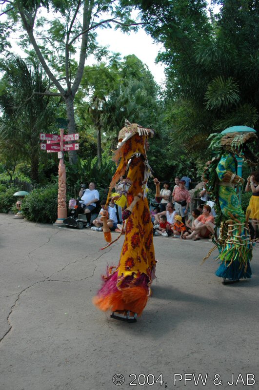 Starts at the Tusker House Gate at Harambe Village. It winds through Disney’s Animal Kingdom and returns to the Tusker House Gate. Concept: With all the sights and sounds of an outrageous island street party, Disney characters have come to town on expedition with a wild, whimsical, larger-than-life tribute to their animal friends. Design Elements: The procession consists of individually designed elements that bring a variety of heights, colors and abstract animal visuals to create a fun, theatrical showcase for the Disney characters. The elements include: five character-based safari vehicles, four drum sculptures, three rickshaw taxis, eight animal puppets, 16 Disney characters, 10 Party Animal stiltwalkers, and 10 Party Patrols. The eight abstract animal puppets were designed by Michael Curry Designs in Portland, Ore., which created the puppets for “The Lion King” on Broadway. Costumes: “Mickey’s Jammin’ Jungle” parade costumes were designed by Matt Davidson. The prototypes for the puppeteer costumes were crafted in Africa by native artisans. Parade costumes were created at Walt Disney World Creative Costuming, Parsons Mears in New York, Costume Armor in New York and Vegas Costumes in Las Vegas. Performers: Features 60 cast members including performers, drivers and coordinators. Highlights: As “Mickey’s Jammin’ Jungle” winds through the park, a menagerie of abstract animal images comes to life in fun, theatrical designs handcrafted from an eclectic mix of natural materials and fabrics. Soaring animated puppets and towering percussive drum sculptures create bursts of living color against Disney’s Animal Kingdom’s dense jungle greenery. Elaborate rickshaw taxis put selected guests in the middle of the parade, accompanied by Disney characters in customized musical safari vehicles. A troupe of 8-foot-tall Party Animals and energetic Party Patrols interact with guests and direct them in the creation of the live call-and-response sing-along music fest. Up to 25 spectators will be selected daily to ride in the opening unit, three guest rickshaws and the finale unit. Guests will be given Kodak disposable cameras so they can capture the special moment aboard the parade. Viewing Tip: In addition to the myriad of characters participating in “Mickey’s Jammin’ Jungle” parade at Disney’s Animal Kingdom, guests can see Disney characters including Pluto, Baloo, Louie, Brer Rabbit, Brer Bear, Timon, Terk and Chip 'n' Dale. I have a tip for people going to see Mickey's Jammin' Jungle Parade at Animal Kingdom. The parade does a loop through the park. There is a portion of the route (near the Safari entrance in Africa) that the parade goes through twice (at the beginning and end). If you get a spot here just before parade starts, you can watch it go by once and then wait ten minutes for it to come by the other way. After the first pass, most guests leave and you have your choice of front row seats without having to line up an hour beforehand. If you have both a still camera and a video camera, this allows you to use both cameras and get some great pictures! Jenn www.AllEarsNet.com |
