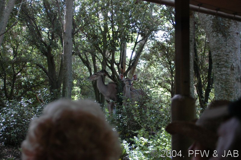 | Your driver will point out the various wildlife for you -- but don't count on them to stop for your photo op, most barely pause. Bongos are hiding around the first bend - look quickly or you might miss these shy creatures. |