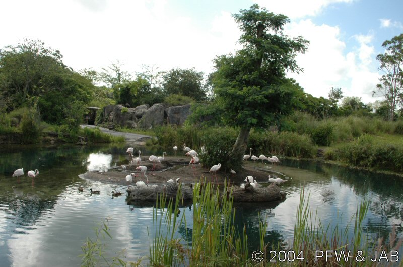 | Pink Flamingoes inhabit a tiny island that legend says is in the form of a "Hidden Mickey". |