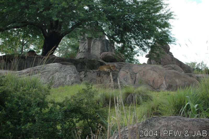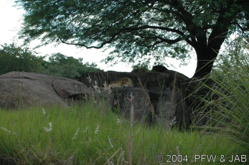 | Coming around the last bend, your attention will quickly be drawn to the high rock formation on your left, where the King and Queen of the Savanaah reside...the Kopje Lions. Lions do spend the majority of their day sleeping; so don't expect to see much activity. |