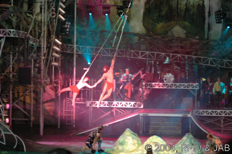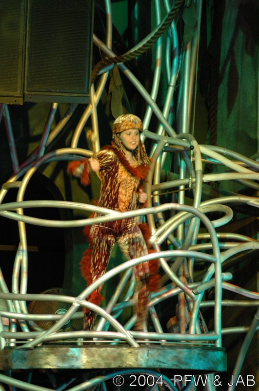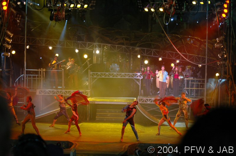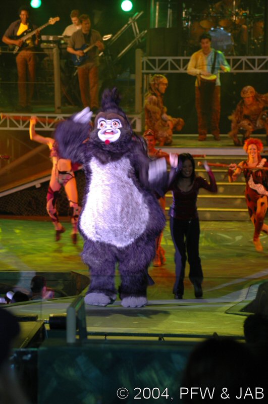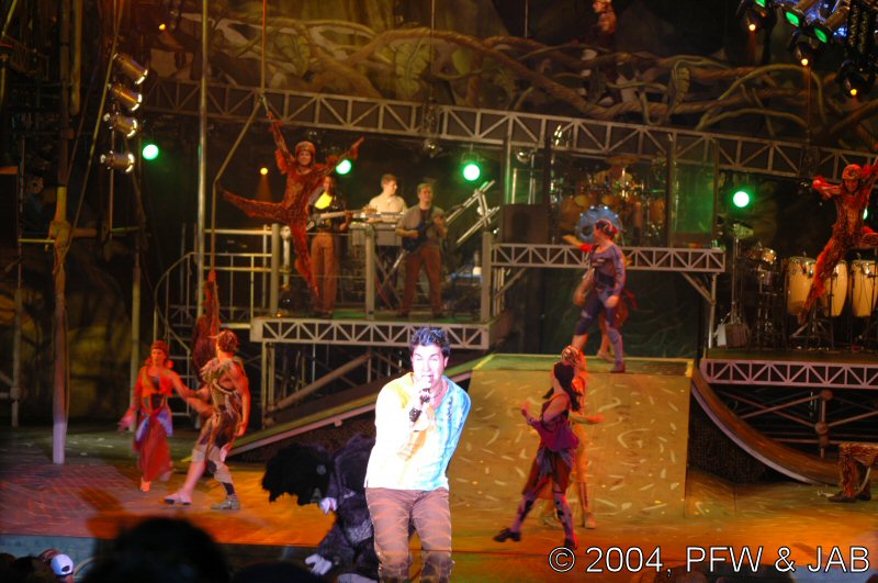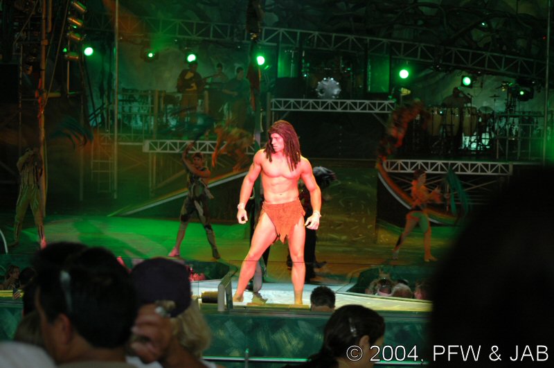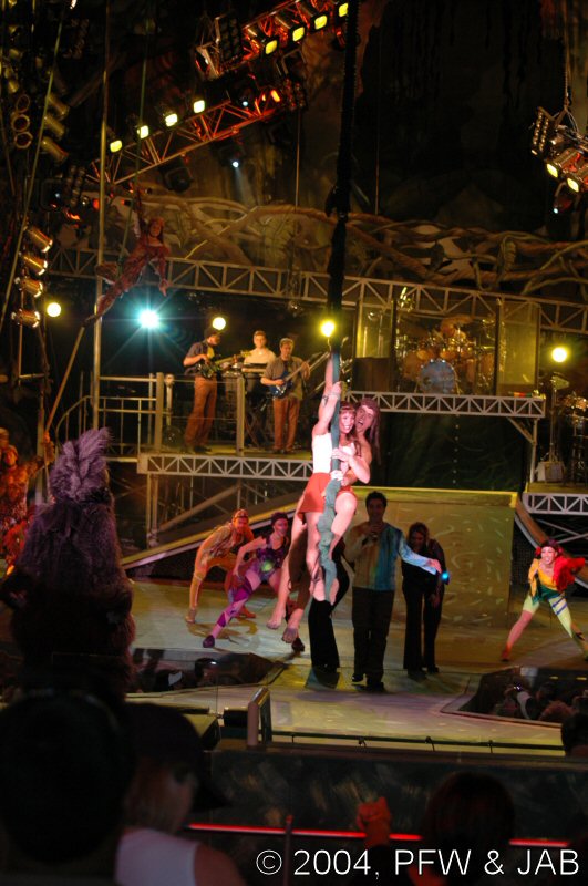 The live show Tarzan Rocks! is based on "Tarzan", a 1999 Disney animated feature film, "Tarzan Rocks!" and brings the high energy and music of the motion picture to life for 30 minutes! And Rock YOU will as you watch this show! In addition to Tarzan, Jane and Terk -- there are singers, dancers, musicians, gymnasts, in-line skaters and aerialists who will entertain you in DinoLand USA's Theater in the Wild. This unique show is a stylistic fusion of rock concert spectacle and a classic action/adventure story that creates a theatrical thrill ride," says the show's director, Reed Jones. The performers fill the theatre during one song set and are both among and above the audience. The four-act show features five songs from the film's soundtrack, including the hit single "You'll Be In My Heart." Terk performs Trashin' the Camp and the audience even gets a chance to practice their Tarzan Yell! During the show, Tarzan and Jane soar above the crowd in a lofty aerial ballet. The entire cast of 27 is back on stage for one last reprise of "You'll Be In My Heart" as this high energy show comes to an end. INTERESTING FACTS