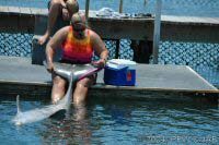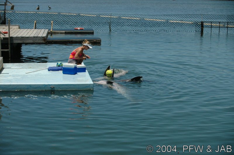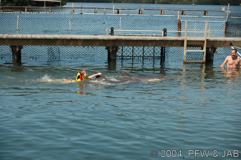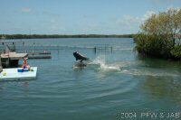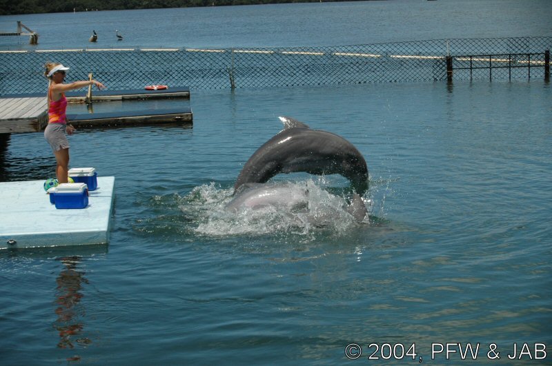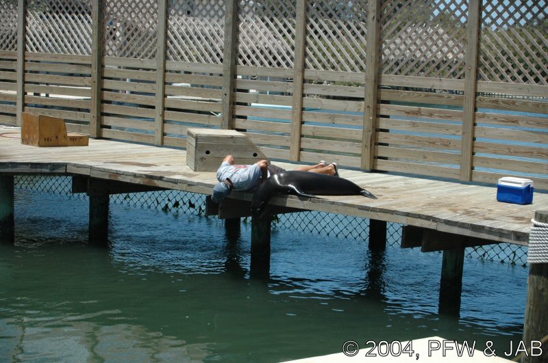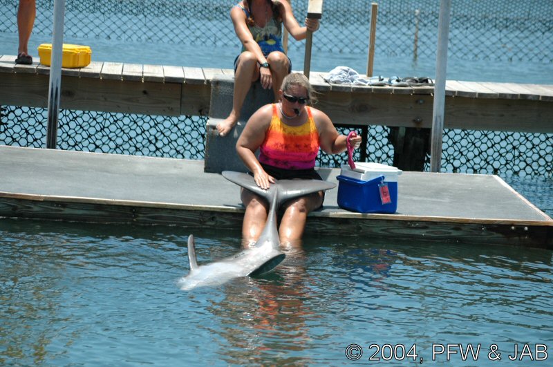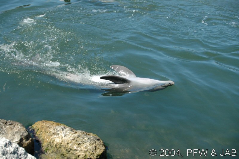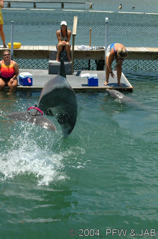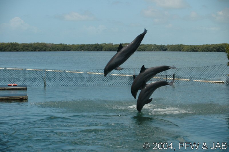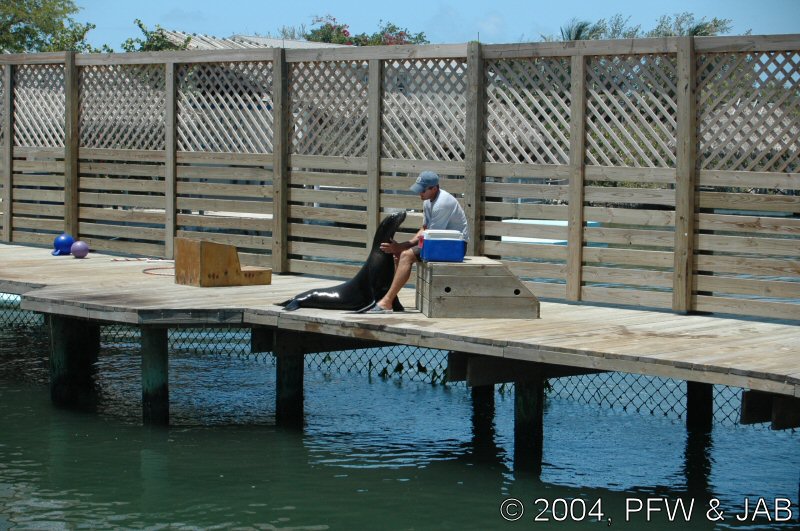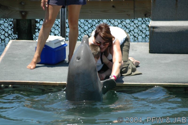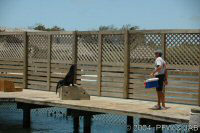 Op naar het Dolphin Research Center. Helaas was het zwemmen met dolfijnen helemaal volgeboekt, maar konden we nog wel terecht voor een dolphin splash: tot je middel in het water met een dolfijn. Het centrum is een non-profit organisatie, maar het onderhoud van dolfijnen is duur. Alle activiteiten zijn kleinschalig en dus ook duur. Daar staat tegen over dat je alle tijd krijgt en hebt. Hier kwamen oorspronkelijk de (vier) dolfijnen die 'Flipper' speelden in de TV serie vandaan. Een aantal van de huidige dolfijnen zijn nazaten van 'Flipper'. Voor een overzicht van de huidige dolfijnen, zie de volgende pagina: "meet the pod". |