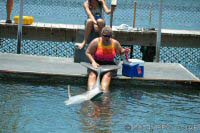 een "zwemmen met dolfijnen"sessie (dolphin encounter) |
