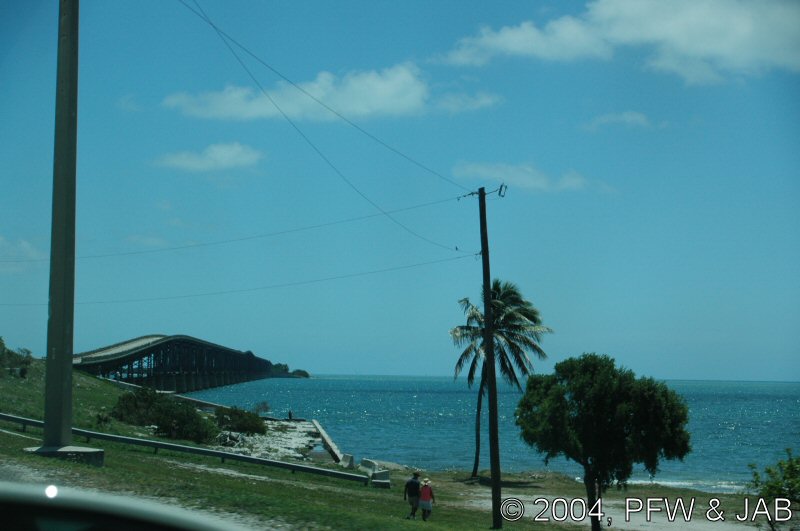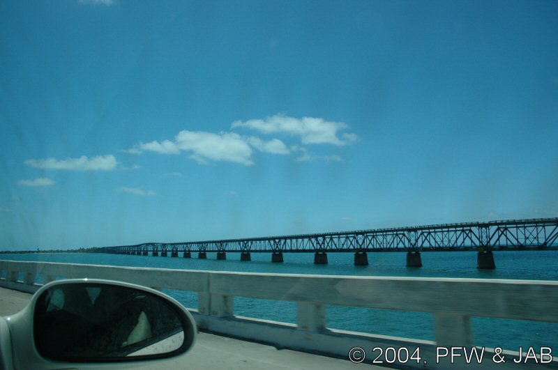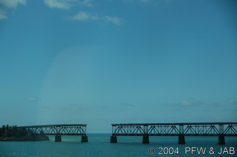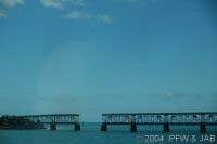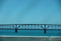 Naast de snelweg ligt de niet meer ingebruik zijnde spoorbrug. het gat is voor schepen |