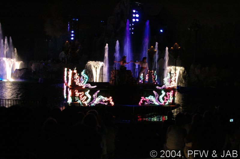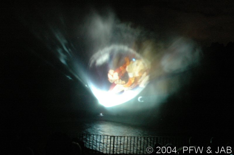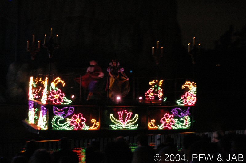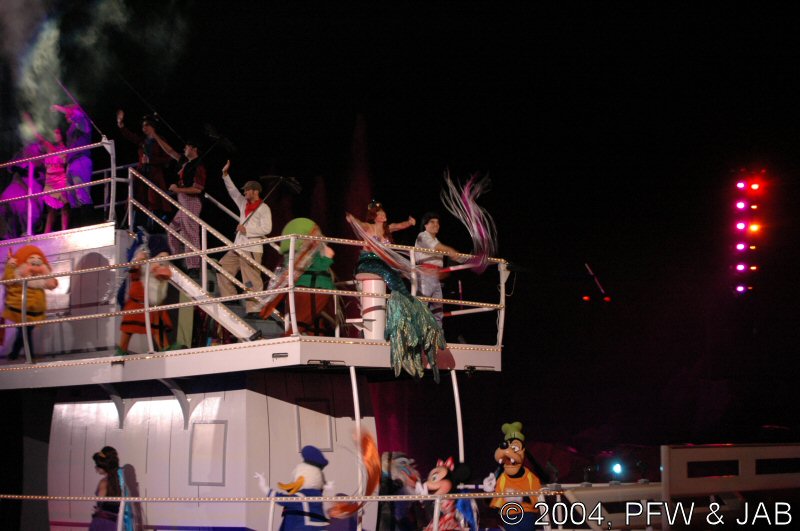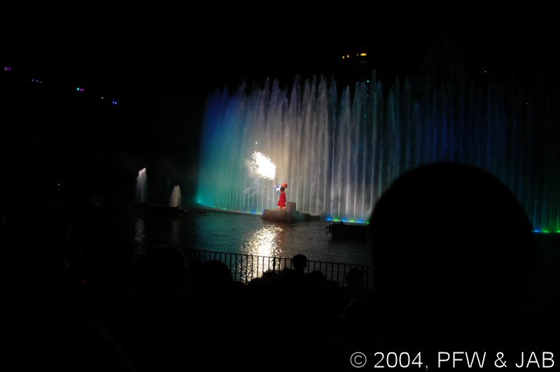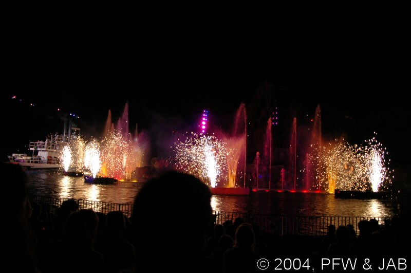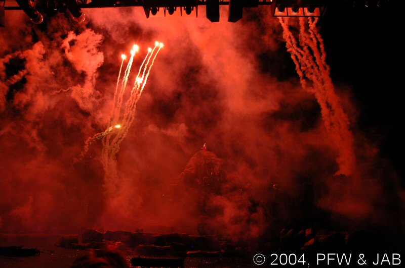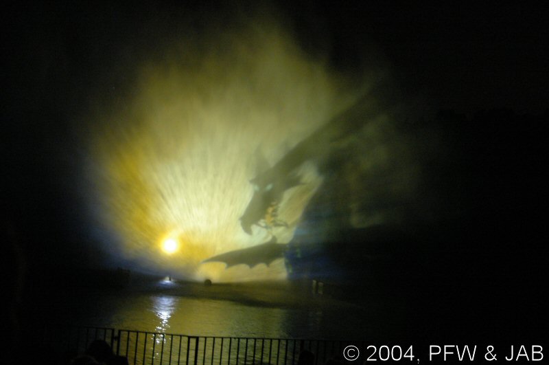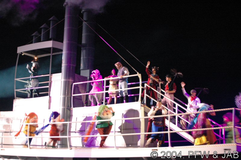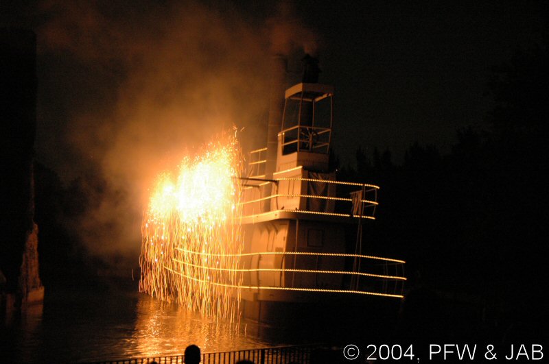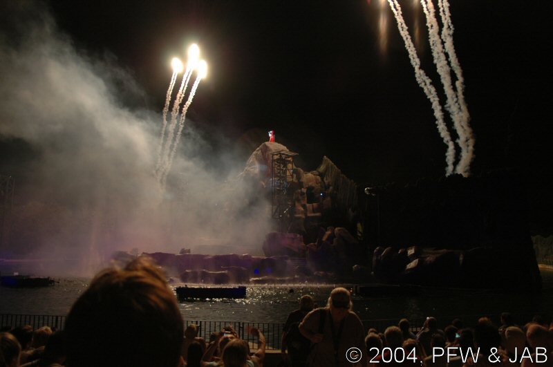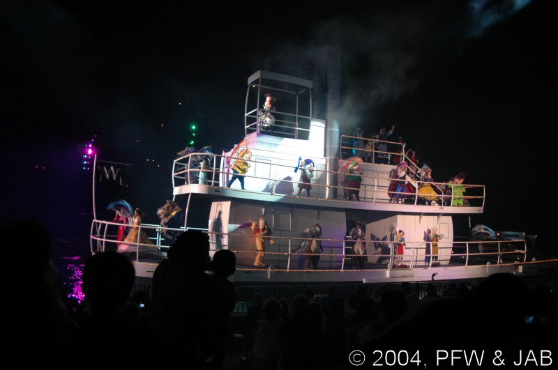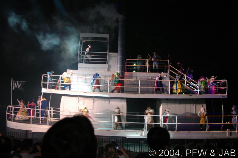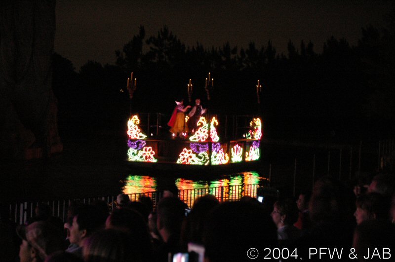 Fantasmic! is een combinatie van praalboten (zoals bekend van de