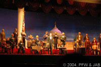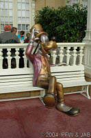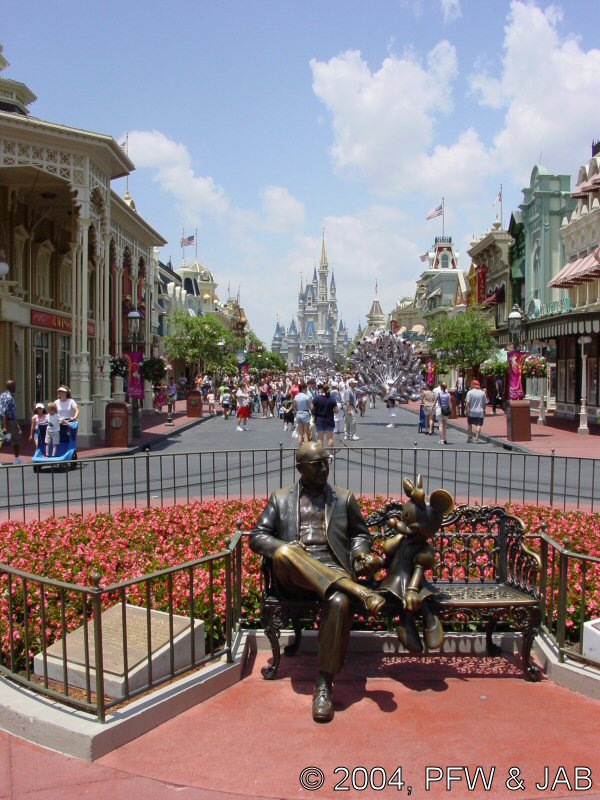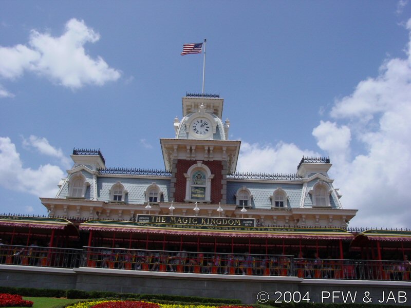 INTRODUCTION Located in Liberty Square in the Magic Kingdom, the Hall of Presidents is an original Disney classic first conceived of by Walt Disney himself. The attraction is derived from "Great Moments With Mr. Lincoln," which premiered at the New York World's Fair in 1964. ATTRACTION Hall of Presidents -- The lobby of this beautiful theater is filled with portraits of the presidents. You enter the darkened, 700-seat theater and first view a patriotic film in which specially produced paintings are projected onto a screen that stretches about halfway round the theater (180 degrees). The film covers much United States history, focusing on the origins of the Constitution and the presidency. At the conclusion of the film, the screen parts to reveal a stage filled with lifelike Audio-Animatronics versions of each and every one of the US presidents. Each of the figures moves, nodding a head or gesturing in some way, as their names are called. The program concludes with speeches given by our current president, George W. Bush, and the 16th president, Abraham Lincoln, who actually rises from his chair. |