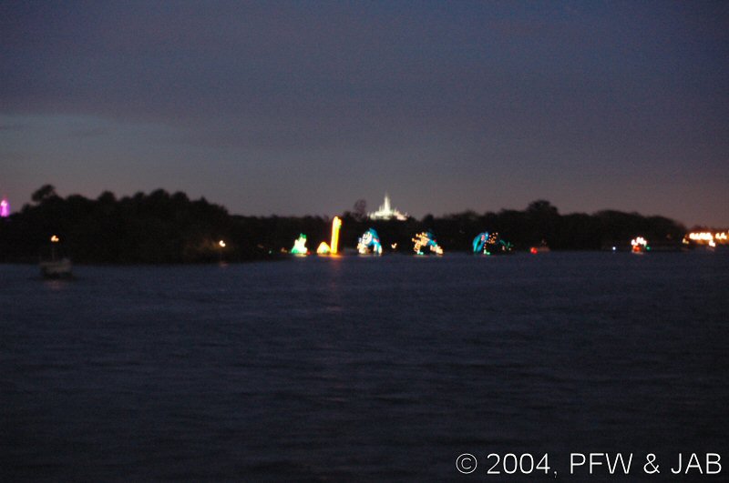 Verbazingwekkend is dat we deze 'waterparade' in alle rust met ongeveer 13 personen zagen. Verder was er niemand te bekennen!!! Dit moet een van de best bewaarde geheimen van Disney zijn. |