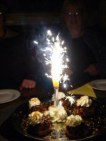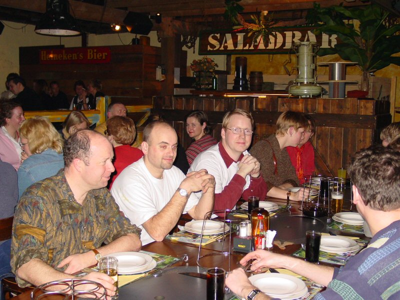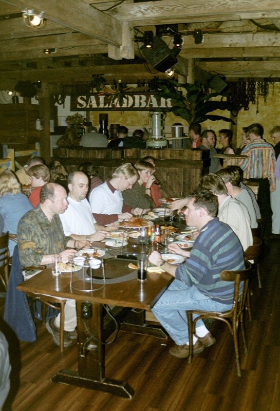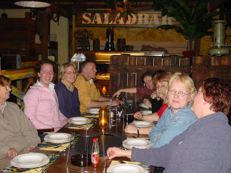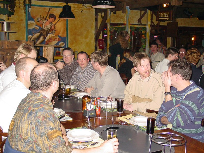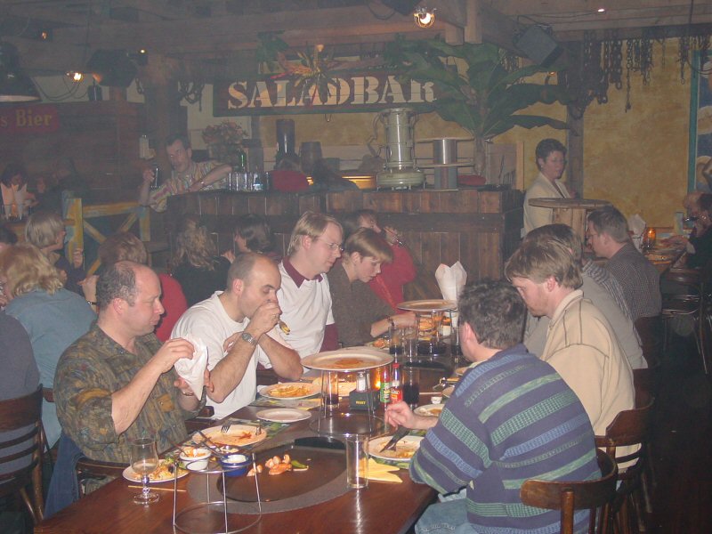 Na het bowlen een gezellig etentje met "spetterend" toetje en - voor de romantici onder ons - een dansje op de dansvloer.