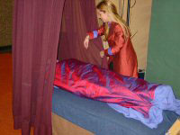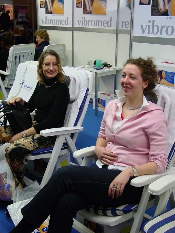 Nadat de bruid haar mobiele telefoon, handtas en geld afhandig was gemaakt, werd ze - alweer - meegenomen naar de RAI in Amsterdam. De ceremoniemeester (V) had een bezoekje aan de Sante Gezondheidsbeurs bedacht. Dus werden de massagestoelen uitgeprobeerd, en de water-massage banken (heerlijk ontspannend), werd een tarot kaart getrokken (je staat op een punt van verandering!!!) en aura foto's gemaakt. Gek genoeg had bijna iedereen de zelfde hoofdkleur: rood - dynamisch volgens de uitleg. Gezellig en een beetje gek.