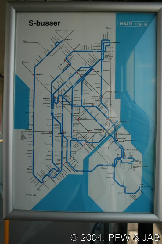 | Vanaf Kastrup gaat bus 250-S in 20 minuten naar Radhusplatsen. Kaartjes te kopen bij de chauffeur: DKR 51 voor twee kaartjes naar het plein. |