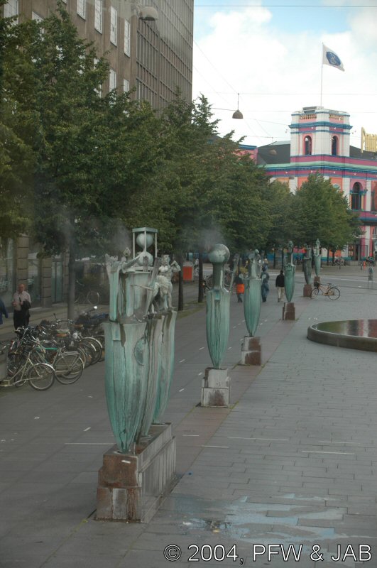 Kunstzinnige (stomende) beelden op het plein tegenover Tivoli