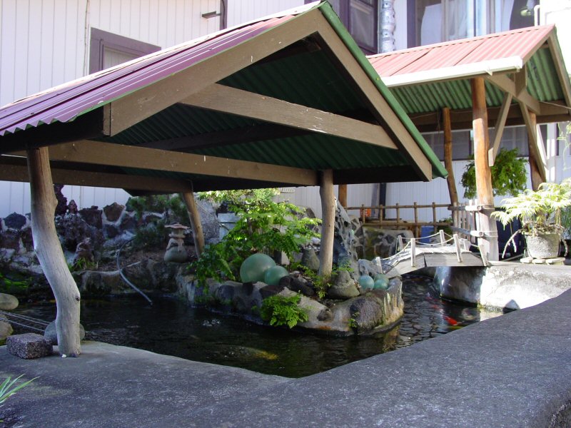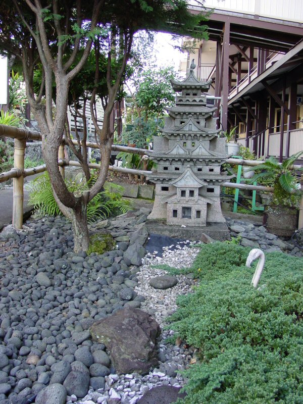 Tussen de beide gebouwen in is een tuin waarin miniatuurtuintjes zijn aangelegd