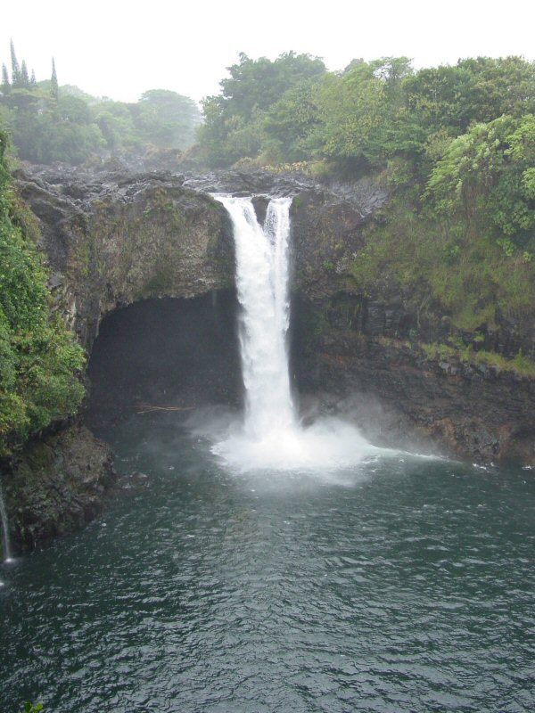Helaas regende het, zodat er geen regenboog te zien was. Bovenaan de waterval